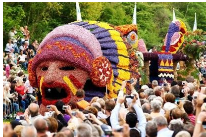 秋天荷蘭各地有大大小小.形形色色的花車及水果祭游行.各個(gè)地方的花車游行都有著特別的意義與故事.其中.以阿姆斯特丹花車游行盛典最為著名.長(zhǎng)達(dá)5公里的游行隊(duì)伍早上由阿斯米爾離開.下午抵達(dá)阿姆斯特丹的水壩廣場(chǎng)。