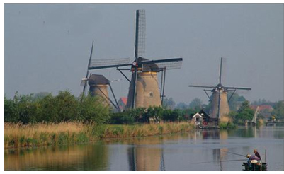大不列顛島遙遙相望并構(gòu)成漏斗形尾部的地理特征,大西洋季風(fēng)從北海長(zhǎng)驅(qū)直入,荷蘭正處風(fēng)帶要沖,長(zhǎng)年受益,風(fēng)車也就應(yīng)運(yùn)而生。
